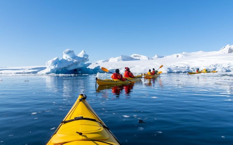 Nehmen Sie an den täglichen Expeditions-Ausflügen teil. Fahren Sie mit den Zodiacs zu gigantischen Eisformationen und landen Sie immer wieder an um große Pinguinkolonien zu sehen. Paddeln Sie mit dem Kajak oder Stand-up-Paddleboard um Eisberge herum und hören dabei das Knacken des Eises neben und die Laute der Wale unter Ihnen.